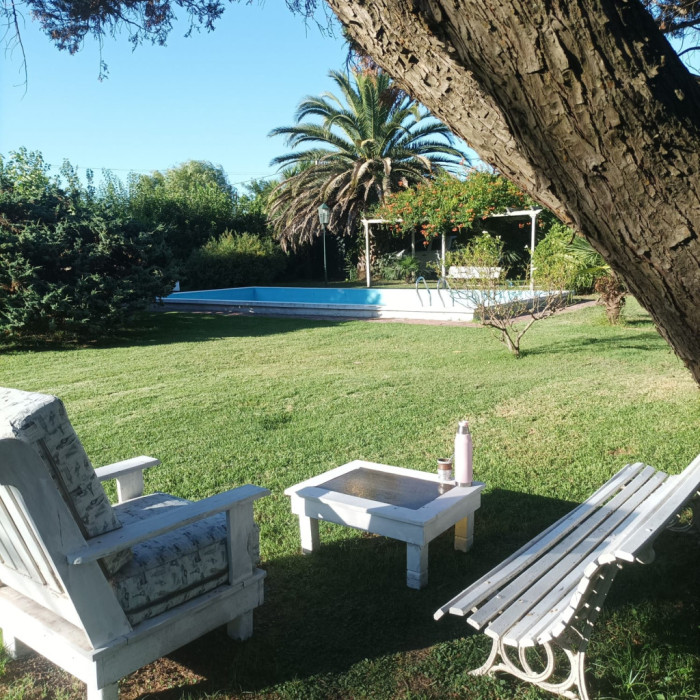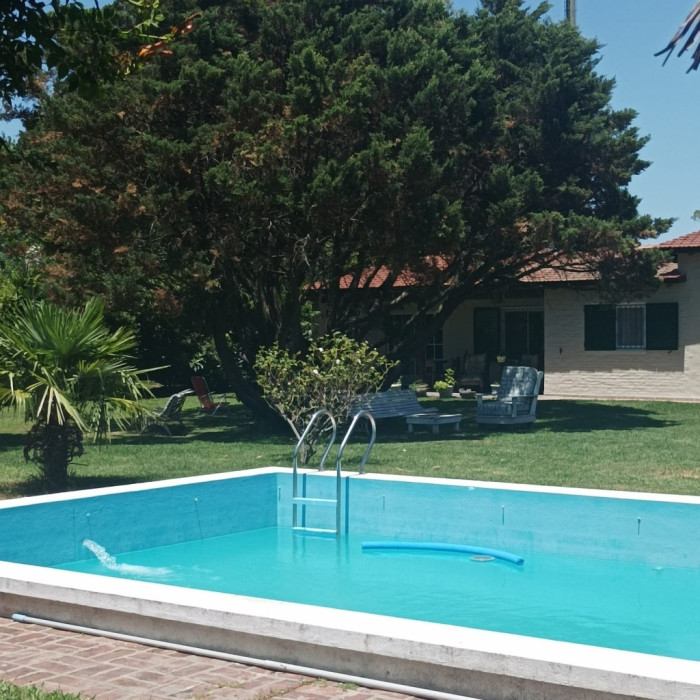 2 DORMITORIOS, 1 CON VESTIDOR, BAÑO COMPLETO, LIVING COMEDOR COCINA, QUINCHO CUBIERTO CON PARRILLA, GALERIA SEMICUBIERTA, LAVADERO/VESTUARIO PILETA, PILETA DE 10 X 6 MTS, GARAGE/GALPON CUBIERTO.